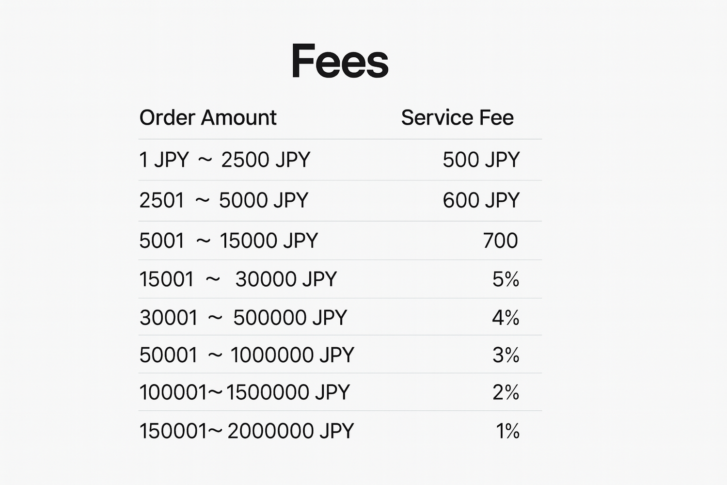 Service Fee Based on item price